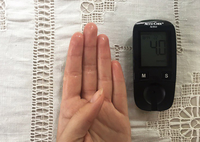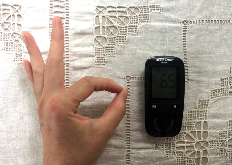 Вот мой реальный уровень глюкозы. Перед измерением я вымыла руки с мылом и вытерла их насухо полотенцем.