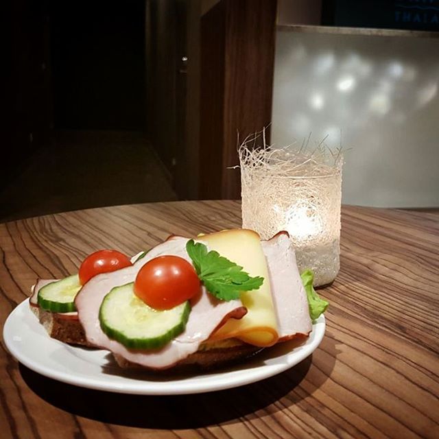 В спа-отеле Fra Mare Thalasso Spa обязательна первичная консультация доктора, я рассказываю пожилой эстонке, что у меня диабет. А она мне ставит на карточку "D" и говорит "вечером после ужина иди в бар". Ну, думаю, классно :) а оказалось, что мне положен ночной бутерброд :) на случай гипогликемии. В общем, каждый вечер надо брать себе в номер. :) Прекрасная идея! И очень вкусный бутерброд.
