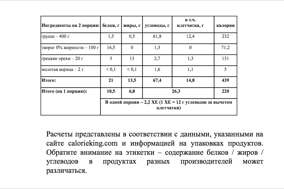 *Расчеты представлены в соответствии с данными сайта calorieking.com и информацией на упаковках продуктов. Обратите внимание на этикетки  содержание белков, жиров, углеводов в продуктах разных производителей может различаться.