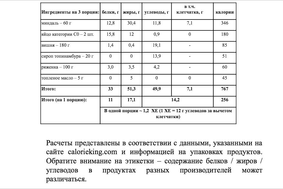 (рецепт на ~ 1,2 ХЕ в одной порции (1 ХЕ = 12 г углеводов за вычетом клетчатки))