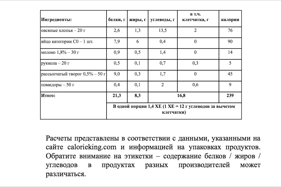 *Расчеты представлены в соответствии с данными сайта calorieking.com и информацией на упаковках продуктов. Обратите внимание на этикетки – содержание белков / жиров /углеводов в продуктах разных производителей может различаться.