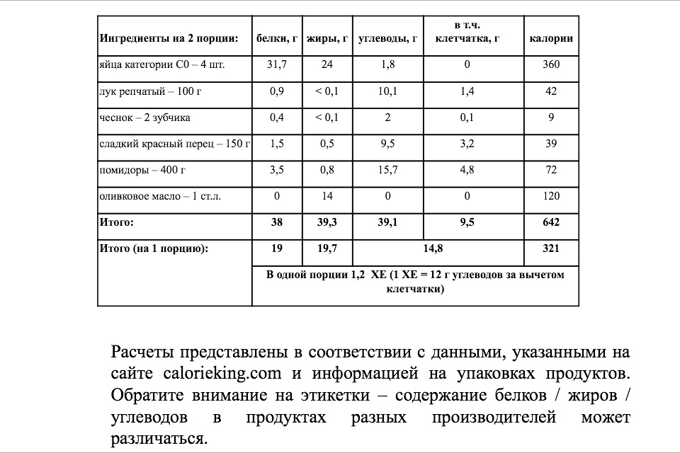 (рецепт на ~1,2 ХЕ в одной порции (1 ХЕ = 12 г углеводов за вычетом клетчатки))