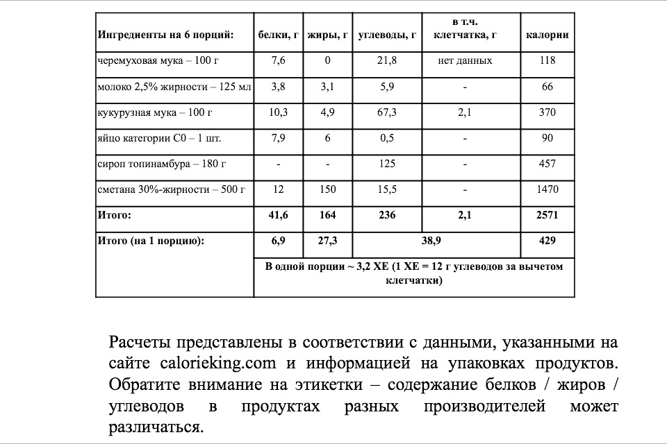 *Расчеты представлены в соответствии с данными сайта calorieking.com и информацией на упаковках продуктов. Обратите внимание на этикетки – содержание белков / жиров /углеводов в продуктах разных производителей может различаться.