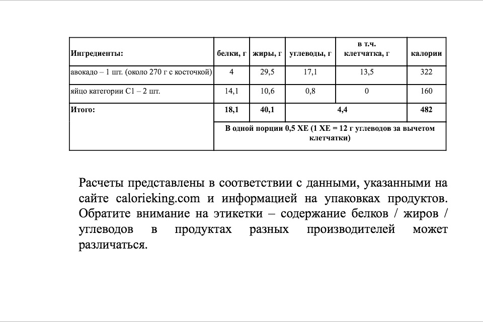 *Расчеты представлены в соответствии с данными сайта calorieking.com и информацией на упаковках продуктов. Обратите внимание на этикетки – содержание белков / жиров /углеводов в продуктах разных производителей может различаться.