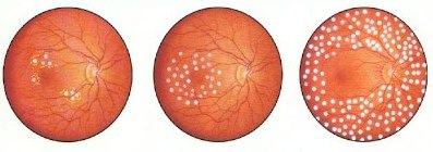 На фото: лазерная фотокоагуляция (слева направо) - фокальная; по типу решетки; ПРЛК