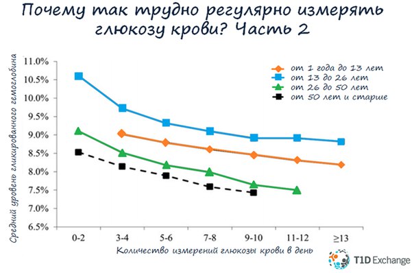 Конечно, есть. Три года назад в США ученые собрали данные 20 555 человек с сахарным диабетом 1 типа и обнаружили, что одно дополнительное измерение глюкозы крови в день приводит к снижению гликированного гемоглобина примерно на 0,5%. В этом Вы можете убедиться, посмотрев на картинку.