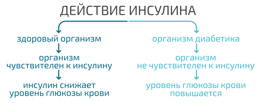 Инсулин – это гормон, ответственный за снижение уровня глюкозы крови. При сахарном диабете 2 типа он вырабатывается, но организм к нему не чувствителен и поэтому не использует его должным образом. Именно поэтому и происходит повышение уровня глюкозы крови.